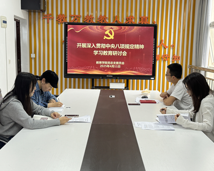 图为教育学院党总支开展深入贯彻中央八项规定精神学习教育研讨会