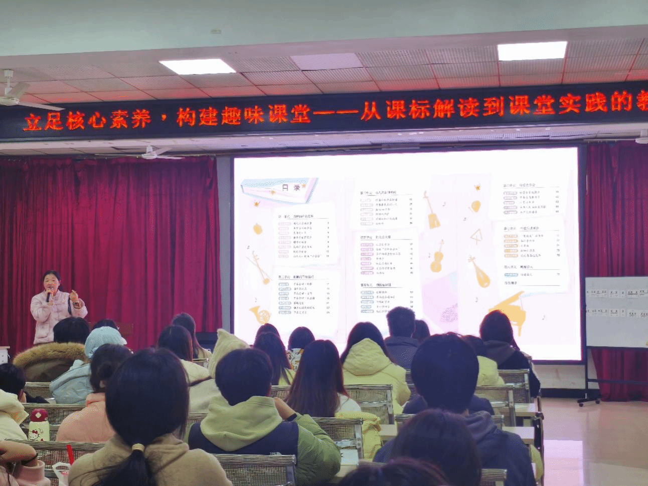 课程伊始,陈奇老师围绕新课标背景下美育地位提升与教学转型要求展开解析,系统阐述了音乐学科“审美感知、艺术表现、文化理解、创意实践”四大核心素养,强调以素养导向推动课堂革新。