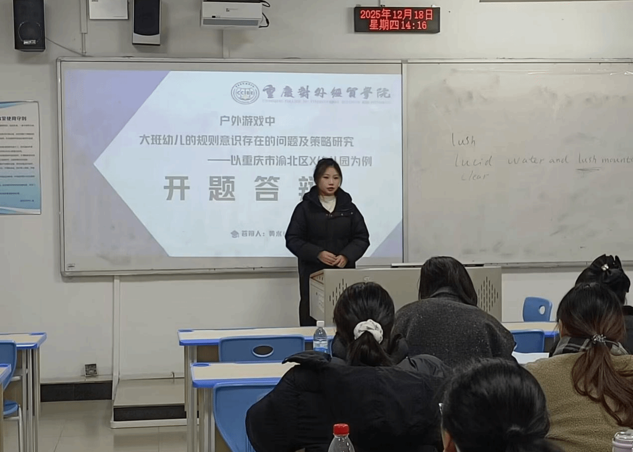 为切实保障毕业生论文质量,夯实论文撰写基础,助力2026 届毕业生明晰研究方向、完善研究框架,重庆对外经贸学院教育学院于2025年12月18日在合川A校区五教、三教顺利开展2026 届毕业生论文开题工作。本次开题工作得到学院高度重视,51位经验丰富的论文指导教师与2026届全体毕业生共同参与,为论文撰写工作筑牢前期根基。