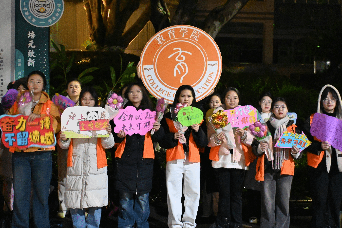 为深入贯彻习近平新时代中国特色社会主义思想,践行立德树人根本理念,落实党的全面育人方针,全力护航2026届研究生考试学子逐梦之路,让考生以饱满精神、愉悦心情和昂扬斗志奔赴考场,在辅导员郑欣怡老师的带领下,重庆对外经贸学院教育学院主席团、志工部与宣传部组建考研送考队伍,携36名志愿者于2025年12月20日在合川A校区培元大道温情举办“研路奋斗,未来可期”考研送行活动。学院以初心践使命,用关怀暖人心,让这场送考活动成为连接师生情谊、传递青春力量的纽带,彰显了育人路上的责任与温度。