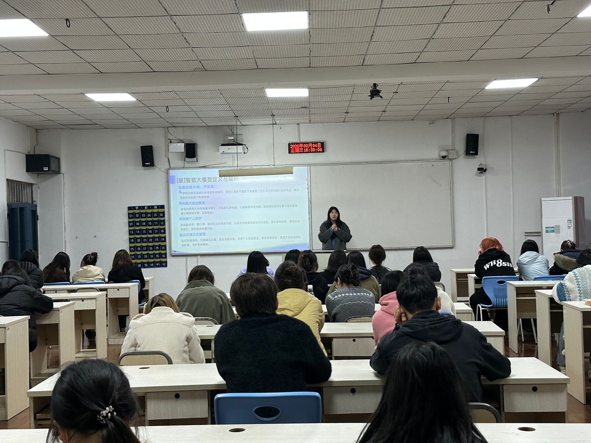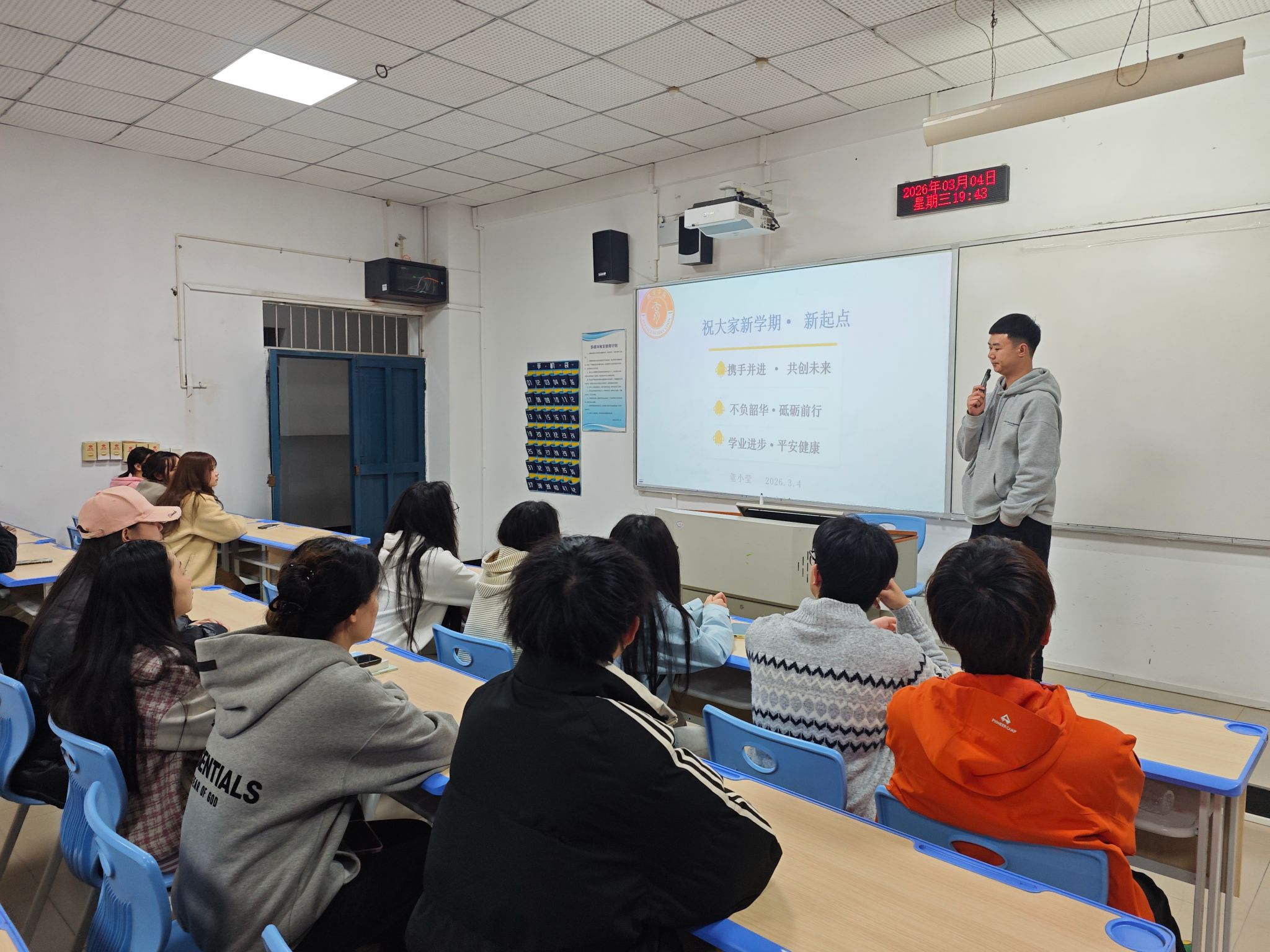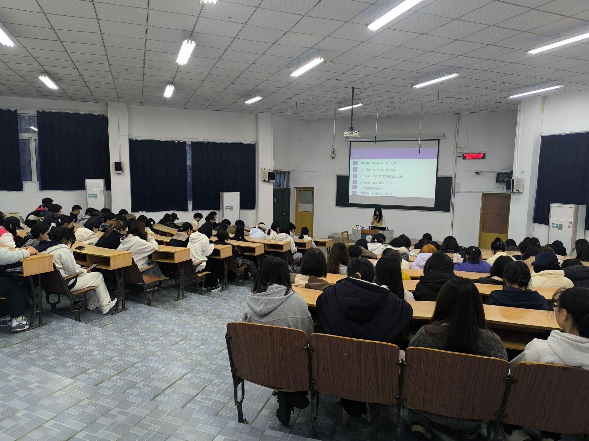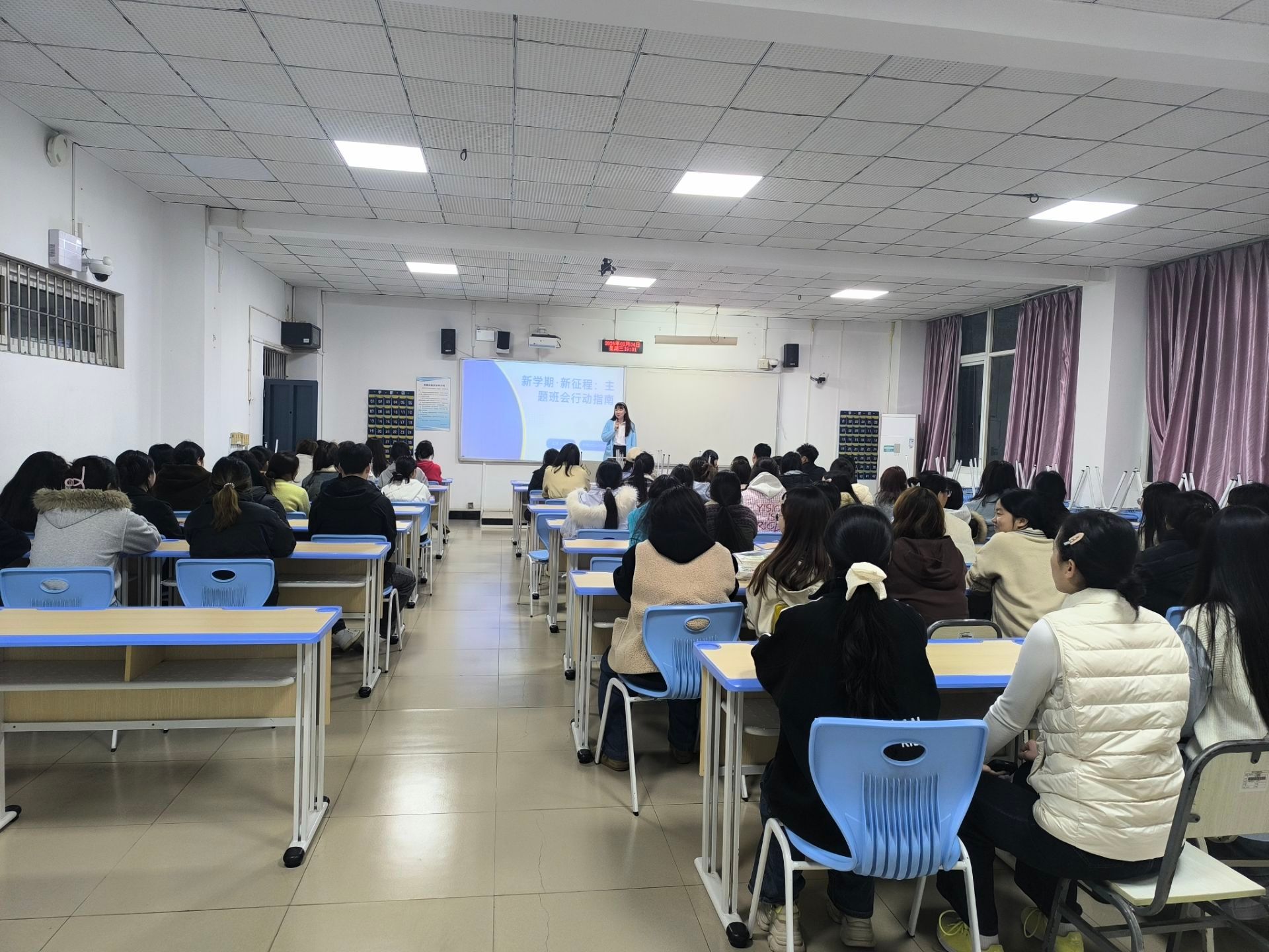 全体学生集中会议以“收心、立志、守规、安全”为主题,面向全体学生开展开学教育。会议强调新学期纪律要求,引导学生快速调整状态,回归校园学习生活;重点开展意识形态教育、法治教育、安全教育与心理健康教育,普及安全知识、提升防范能力;围绕学业规划、班风建设、文明校园创建等进行动员,鼓励学生坚定理想信念、严守校规校纪、勤奋刻苦学习,以昂扬姿态投入新学期。