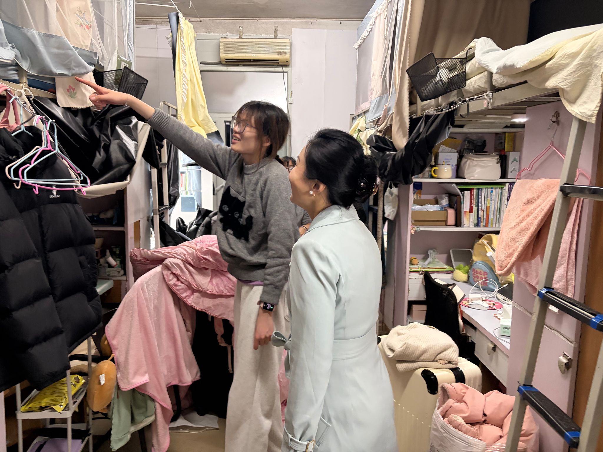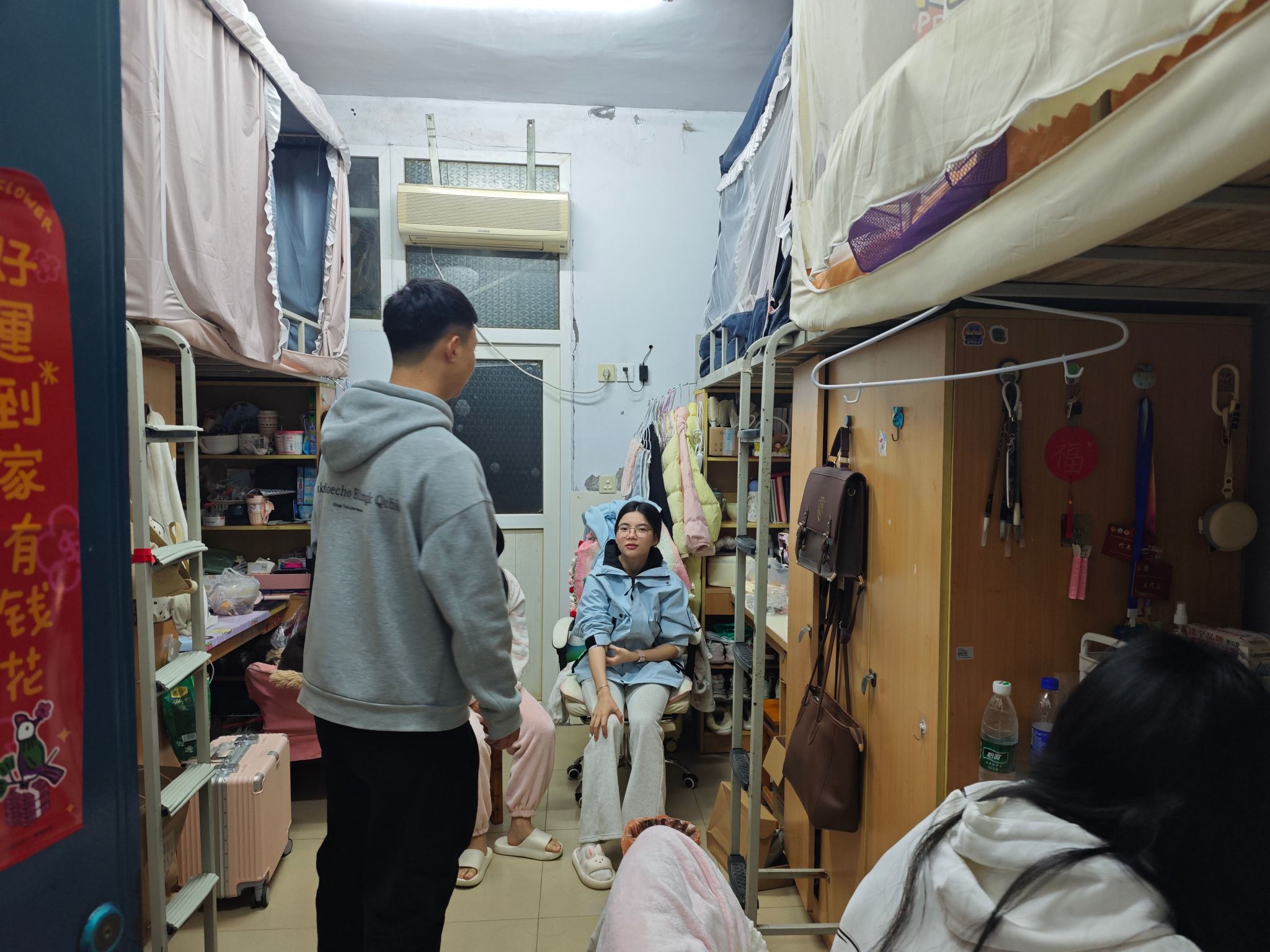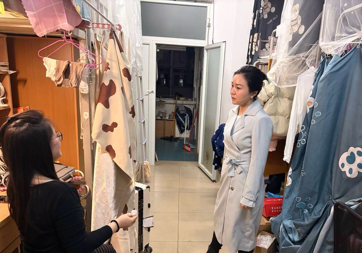 图为副书记带头走访寝室
