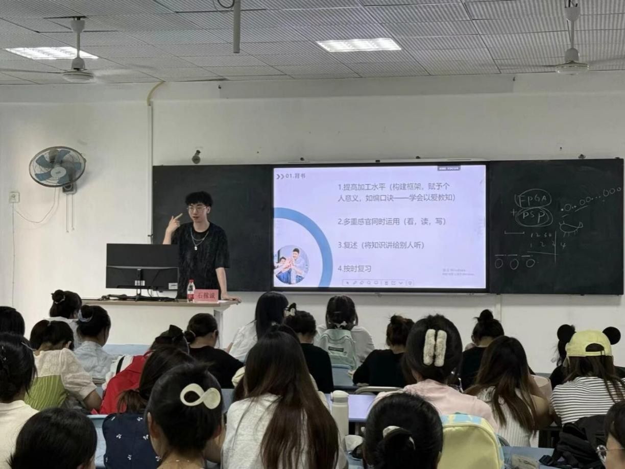 在学前教育专场,蒋怡佳学姐以“时间管理与阶段攻坚”为主题,系统构建“基础-强化-冲刺”三阶段备考体系,详细阐释各学科复习要点,强调“按部就班”的执行力对于备考全程的关键作用;池佳惠学姐聚焦“择校逻辑与心态调适”,通过思维导图演示院校筛选的科学方法,深入解析“费曼学习法”在专业课复习中的创新应用,并结合亲身经历提炼备考避坑指南,助力学子构建高效备考路径。