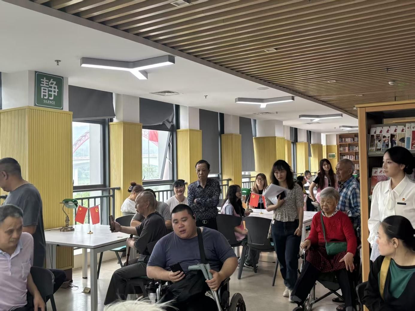 为深入贯彻党的二十大精神,积极践行社会主义核心价值观,扎实推进文化惠民工程,助力残疾人更好地融入社会、共享文化生活,2025年5月16日上午,在第三十五个全国助残日到来之际,重庆市对外经贸学院教育学院携手合川区残疾人联合会、合川区图书馆各单位于合川区图书馆共同开展了2025年残疾人文化“五个一”之“参观一次展览”“读一本书”文化活动。参与本次活动的人员有合川区图书馆各工作人员、合川区残联50多名残疾人及其家属以及重庆对外经贸学院教育学院17名志愿者。