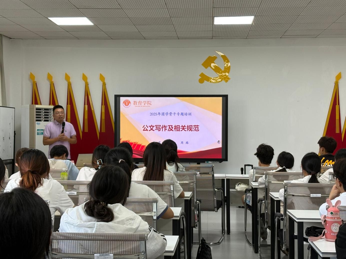 为推进我校公文处理规范化、制度化与科学化进程,提升公文制作质量与处理效率, 10月10日,学院2025年“星火计划”培训班第二讲在合川A校区5403教室顺利举行。学院周路老师担任授课老师,参训人员有2025级、2024级、2023级本科及专升本各班的班长、团支书、组织委员、宣传委员,以及第六届团学组织的全体成员。