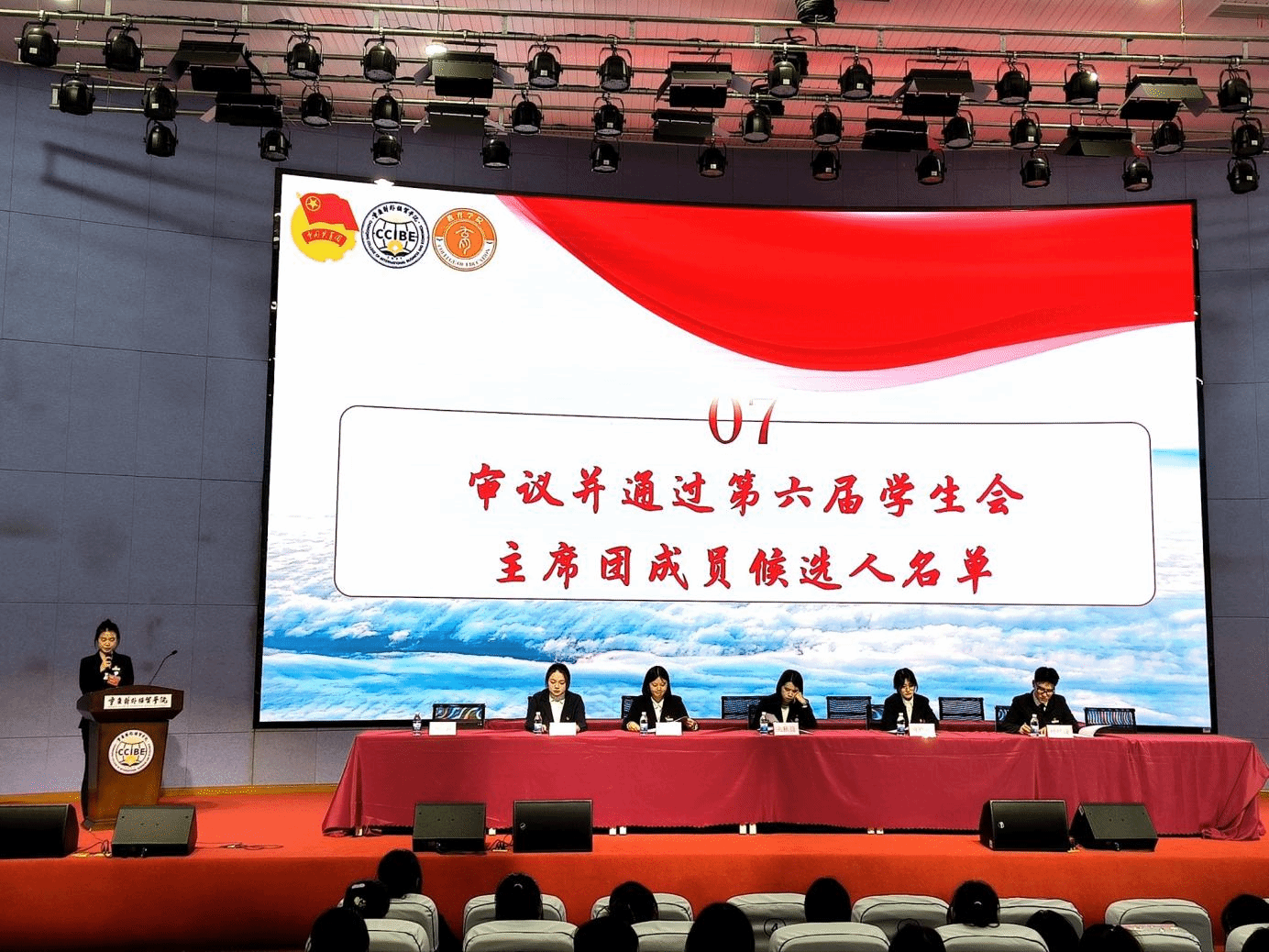 图为宣布第五次学代会常任代表第六届学生会主席团成员名单