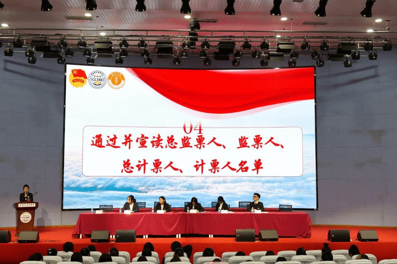 第二次全体会议(闭幕式)开始,经大会表决,依次通过了第五届学生会工作报告、提案工作报告、《重庆对外经贸学院教育学院第五次学生代表大会选举办法(草案)》,以及总监票人、监票人、总计票人、计票人名单。随后进入正式选举环节,各位代表依次进行投票,投票过程公开透明、规范有序,并成功选举产生了第五次学代会常任代表和第六届学生会主席团成员。工作人员宣读当选名单后,教育学院团总支书记朱秋盈宣布了第五次学代会常任代表与第六届学生会主席团成员的最终当选结果,并发表总结讲话。朱老师首先大会的顺利召开表示热烈祝贺,向长期关心支持学院团学工作、助力青年学生成长的各位领导老师致以诚挚感谢,向肩负使命的全体学生代表及全院青年学子致以亲切问候。接着全面回顾了过去一年教育学院团学工作的扎实实践与丰硕成果,强调学院团学工作将始终锚定“服务青年成长、助力学院发展”的核心任务,持续强化思想政治引领的针对性,健全学风建设的长效机制,搭建更贴合教育专业特色的实践舞台,把服务工作做到青年心坎上,并寄语同学们:要立足教育学科优势,牢记“为党育人、为国育才”的初心使命,夯实专业知识功底,锤炼教育教学技能,涵养教育情怀,努力成长为有理想、敢担当、能吃苦、肯奋斗的新时代未来教育工作者,为学院发展和教育事业贡献青春力量。