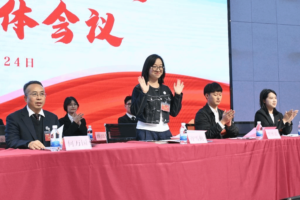图为学生兼职团总支副书记庞婕妤作听取学生代表大会筹备情况报告