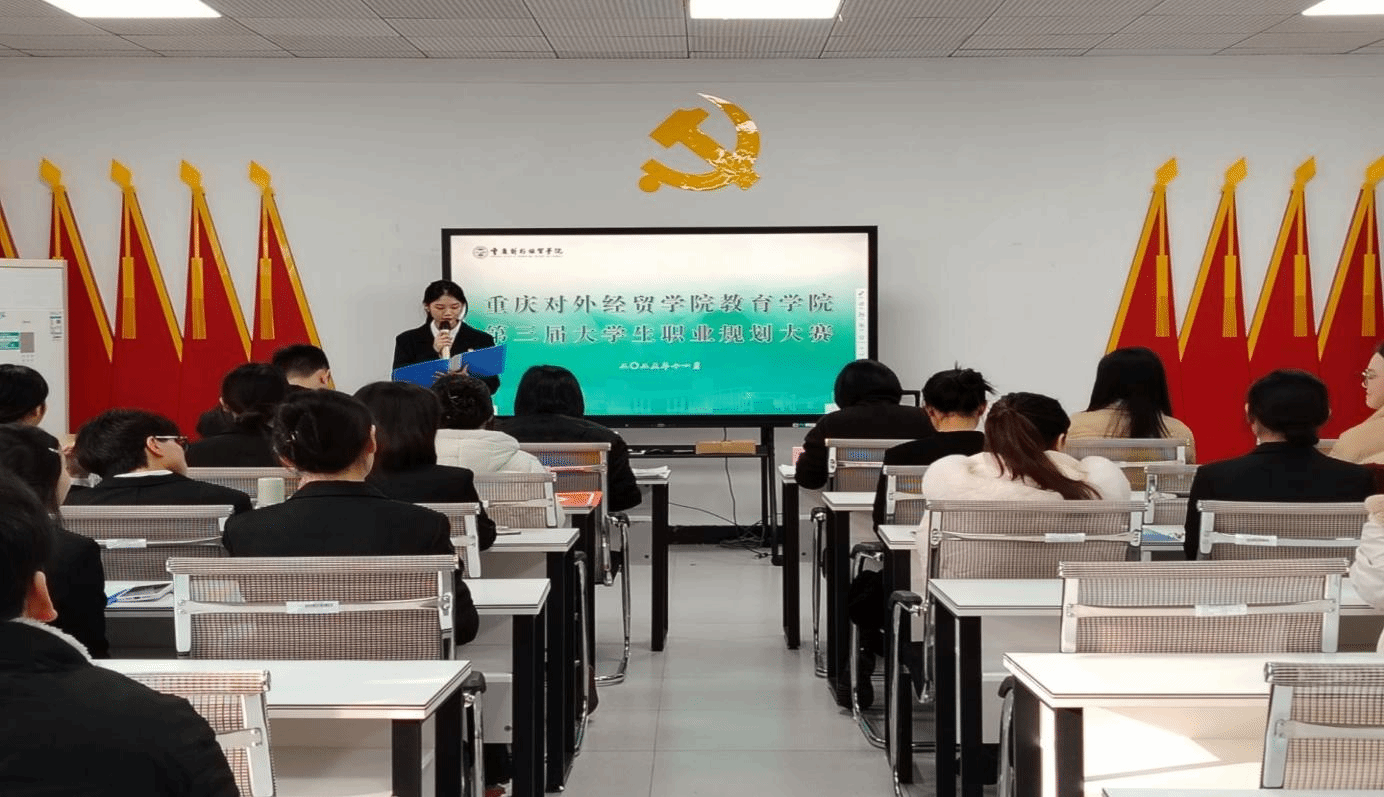 为贯彻落实《国务院关于印发“十四五”就业促进规划的通知》精神,积极响应国家关于高校毕业生的就业工作的决策部署,强化大学生的职业规划意识,助力同学们早日明确职业方向,根据《教育部关于举办第三届全国大学生职业规划大赛的通知》精神及要求,重庆对外经贸学院教育学院于2025年11月20日在合川A校区5403举办第三届大学生职业规划大赛初赛。本次大赛以“筑梦青春志在四方,规划启航职引未来”为主题,秉承“以赛促学、以赛促就”的核心理念,特邀学院党总支副书记陶媛媛、教学副院长许雪梅、辅导员董小莹、刘小青担任评委。