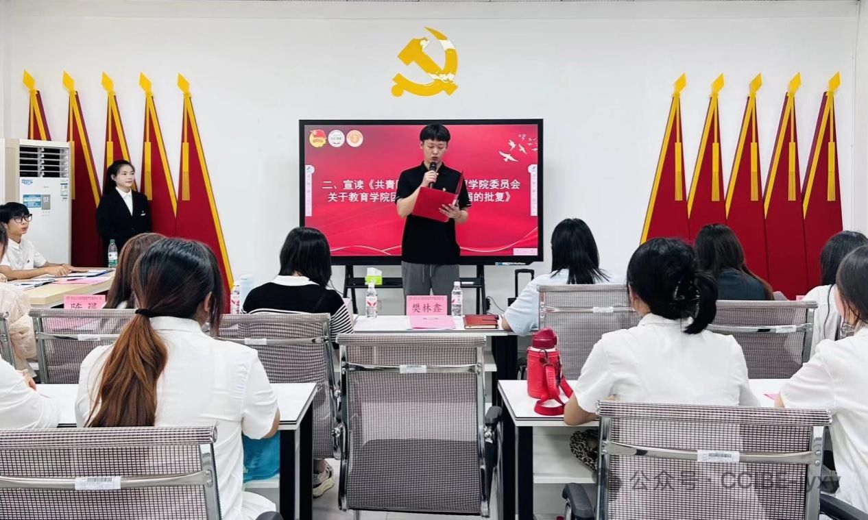 图为校团委干事樊林鑫老师宣读批复