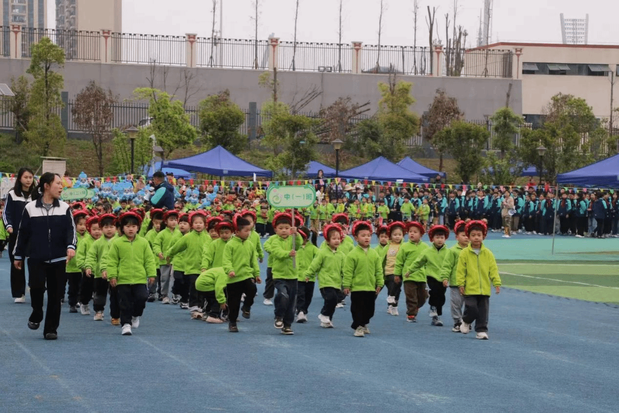 紧接着,老师们带领小朋友前往花果小学进行运动会开幕式彩排。路途中,为确保小朋友们秩序井然,潘老师与何老师积极协助幼儿园老师,和小朋友们一起背儿歌,欢快的儿歌节奏让孩子们兴奋的情绪得到合理引导,队伍始终保持整齐。到达彩排场地后,小朋友们迅速进入状态,在老师们的指挥下进行队列展示与节目排练。他们活力四射,每一个动作都认真完成。两位老师全程参与,观察幼儿园老师在大型活动组织过程中,如何兼顾幼儿安全、维持现场纪律,以及怎样挖掘幼儿潜力,编排精彩节目。