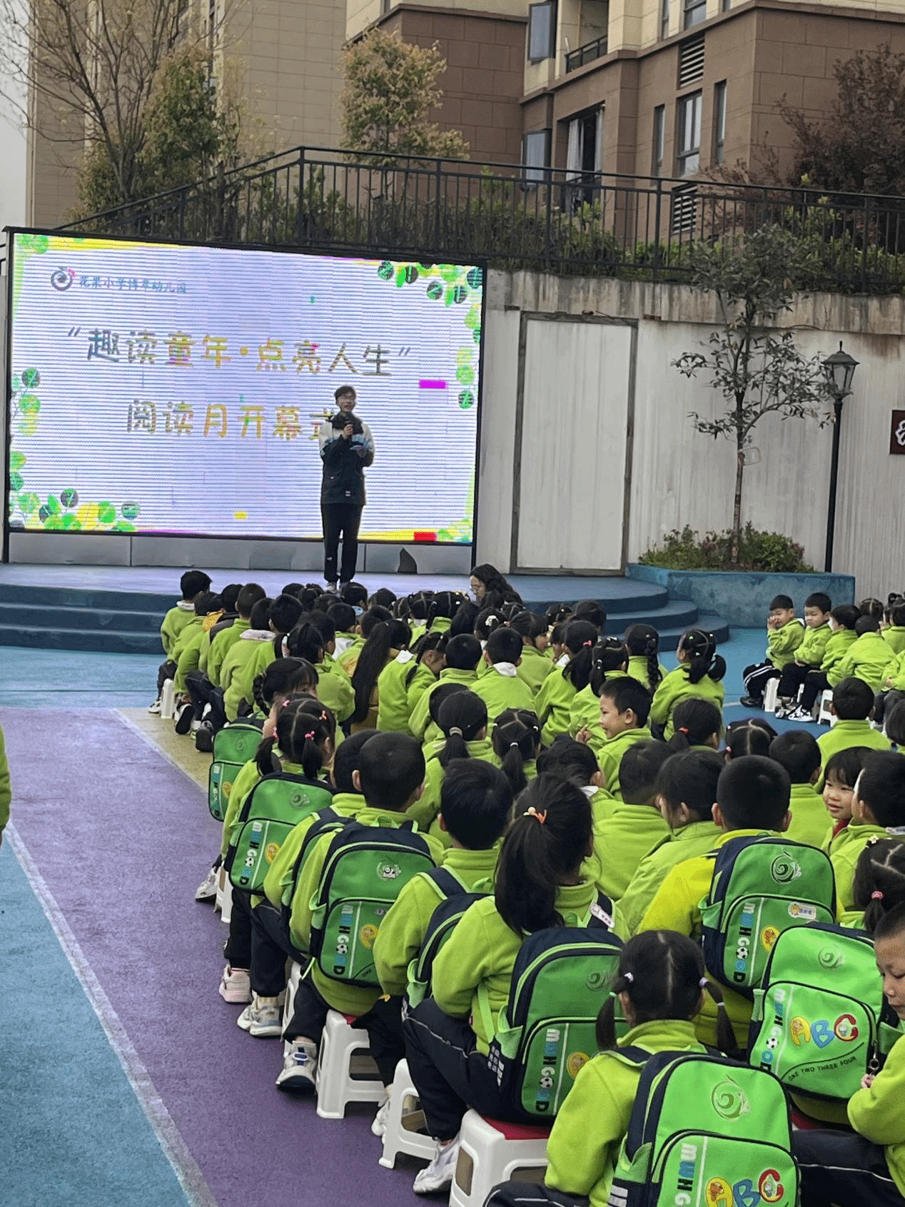 升旗仪式后,幼儿园正式宣告 4 月为读书月。小朋友们带来了精心准备的读书月情景剧表演,生动演绎书中经典情节,童趣十足,充分展现了阅读的魅力。蔡园长上台致辞,回顾了去年读书月的丰硕成果,分享了小朋友们在阅读中成长进步的精彩瞬间,并鼓励全体师生在本月积极投身各类读书活动,让书香弥漫校园。在整个过程中,何老师与潘老师认真观察幼儿园如何通过仪式感教育培养幼儿爱国情怀,以及借助主题月活动激发幼儿阅读兴趣,纷纷记录下活动流程与互动细节。