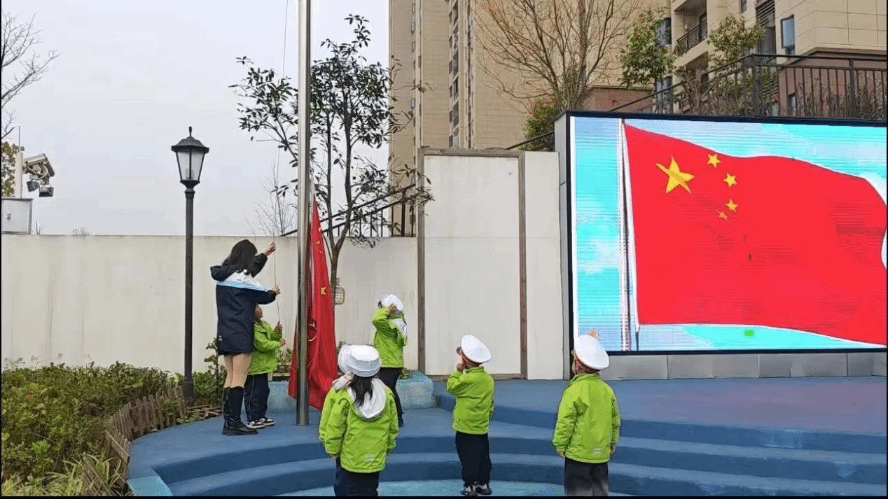 周一清晨,阳光倾洒在博萃幼儿园的操场上,全体师生齐聚,一场庄重的升旗仪式拉开帷幕。本次升旗任务由大班小朋友承担,升旗手与护旗手们身着整齐服装,迈着有力步伐护送国旗走向升旗台。在激昂的国歌声中,国旗缓缓升起,全体师生行注目礼。随后,主持人向大家介绍了升旗手与护旗手,他们都是在日常学习与生活中表现优秀的孩子。