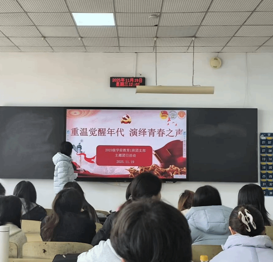 为传承红色基因,汲取觉醒力量,激发青年团员的爱国情怀与责任担当,重庆对外经贸学院教育学院2023级学前教育专业本科1班团支部于2025年12月2日在A校区3502教室开展“重温觉醒年代,演绎青春之声”主题团日活动。