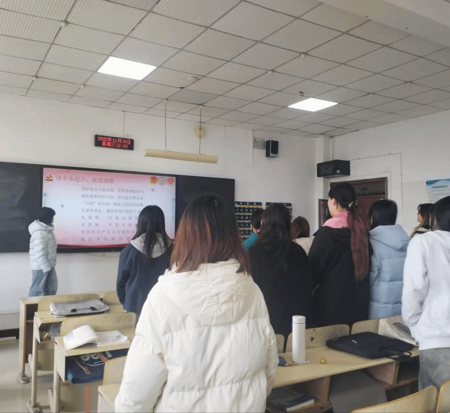 活动伊始,全体成员起立齐唱共青团团歌,激昂的旋律点燃了现场氛围,彰显了青年团员的蓬勃朝气。随后,通过回顾觉醒年代的动荡背景、重要人物与关键事件,同学们深刻感悟到先进知识分子救亡图存的初心与探索救国之路的执着,体会到新文化运动、五四运动等历史事件的深远意义。在红色知识小问答环节,大家积极应答,进一步夯实了红色历史知识,深化了对革命先辈精神的理解。最后,全体成员共同立下青春誓言,承诺以初心践行使命,以奋斗书写华章,将个人成长融入国家发展,用实际行动诠释新时代青年的担当。