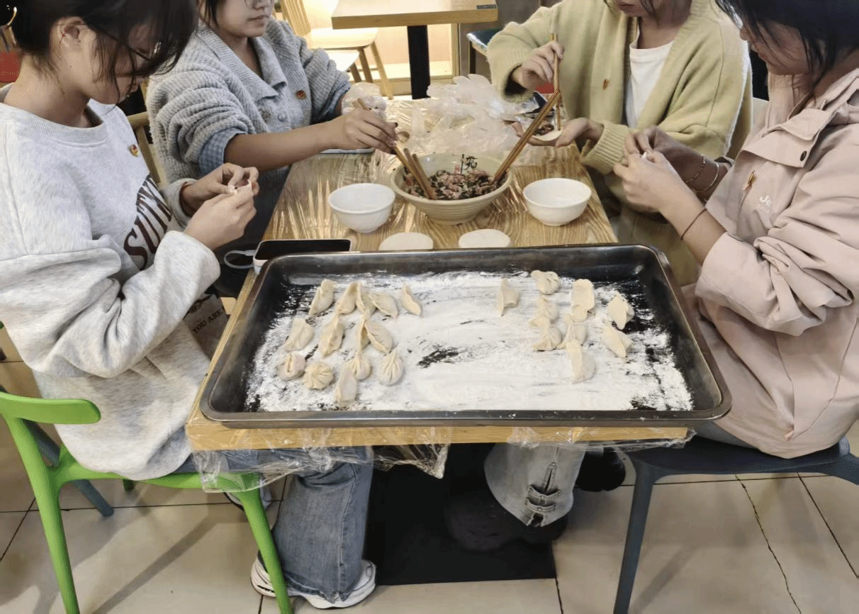 本次活动以全体成员齐唱共青团团歌拉开温馨序幕,然后由班长唐媛媛带领三位班委奔赴菜市场,结合活动人数与口味偏好,精准挑选了白菜、韭菜、猪肉等新鲜食材,还细致搭配了面粉、调味料及餐具,高效完成采购并清点物资返回;随后班委牵头、同学们自发分组,有的负责择菜洗菜、将白菜剁成细腻菜馅,有的调制鲜香的猪肉韭菜馅,还有的提前擀好部分饺子皮,在分工协作中快速完成食材准备;接着全体成员围聚在桌旁,老手带着新手学擀皮、教捏褶,有人包出圆润饱满的“元宝饺”,有人尝试创意造型的“花样饺”,欢声笑语里逐渐摆满了几大盘饺子;最后大家看着饺子下锅、沸腾出锅,围坐分享热气腾腾的饺子,边品尝边交流实践心得,活动尾声团支部书记杨李响总结了本次活动的收获,全体成员以一张笑容洋溢的合影定格了这场既练手又暖心的集体体验。