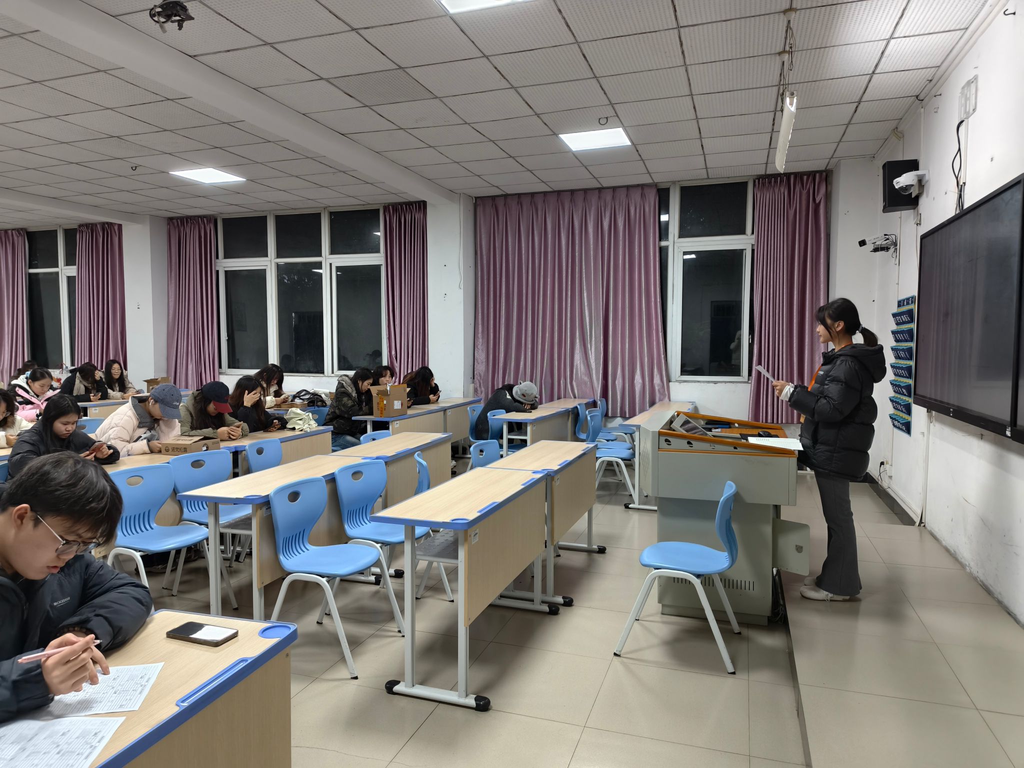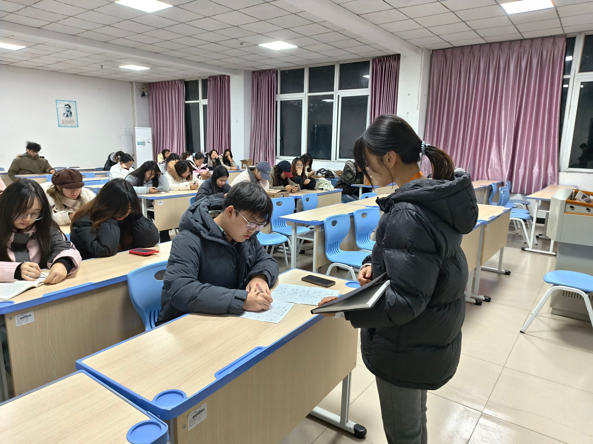 步入教室,映入眼帘的是同学们专注的身影:有的手捧课本低声诵读,有的伏案书写梳理知识点,有的围坐讨论专业课难点……学习部成员每日对早自习情况进行检查与记录,从出勤打卡到学习状态,细致把控每一个环节,确保早自习的学习效率与质量。