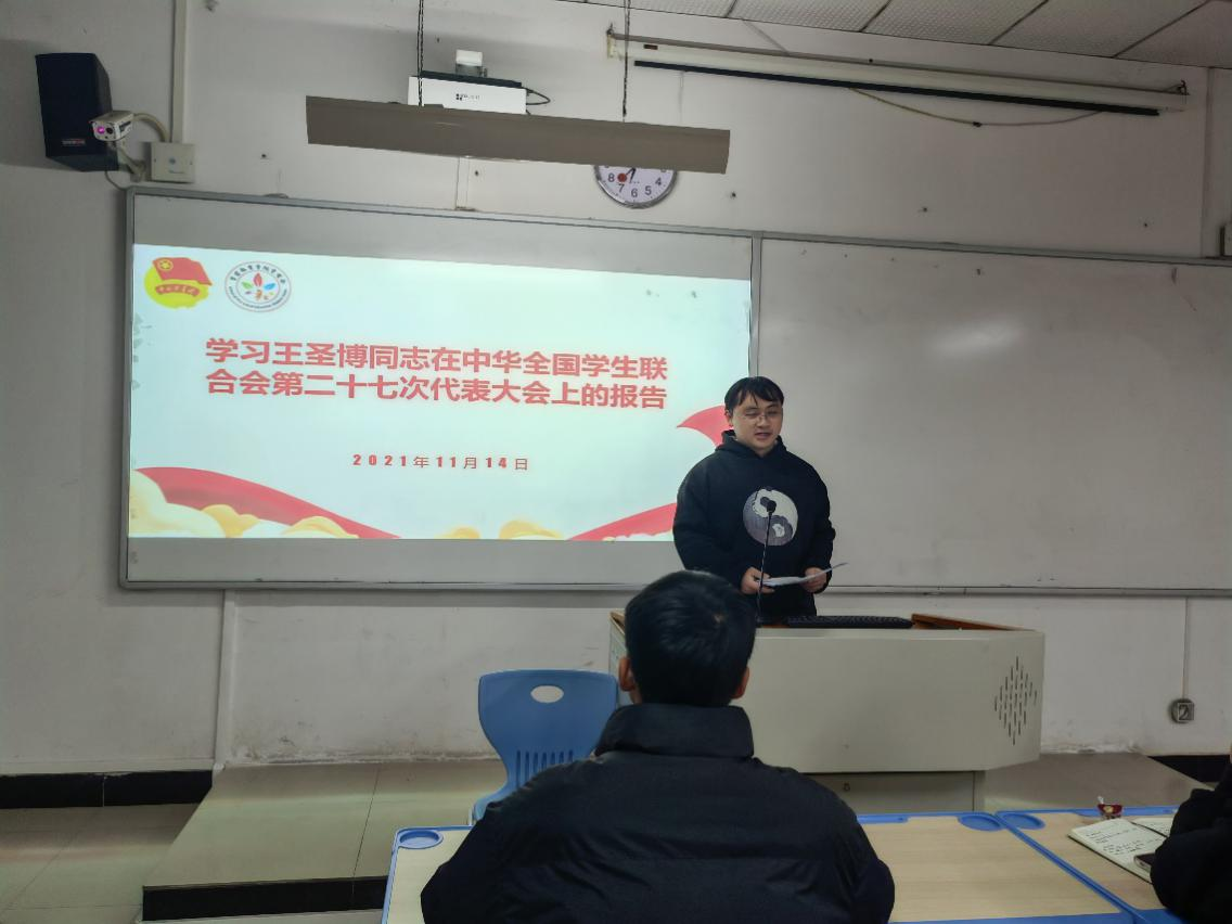 学生会主席团成员黄江林组织学习王圣博同志在中华全国学生联合会第二十七次代表大会报告