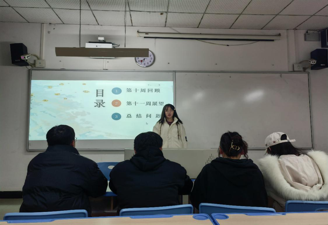 学习部负责人吕雯婕提出现其部门除常规工作外,正协助校学习部开展“三爱三节”主题活动。针对工作问题进行了反思,表示在日常的早自习检查中时刻做到礼貌待人,后期会严格按照要求检查早自习,并及时向辅导员反馈各班情况,架好学生组织和班级之间的桥梁。