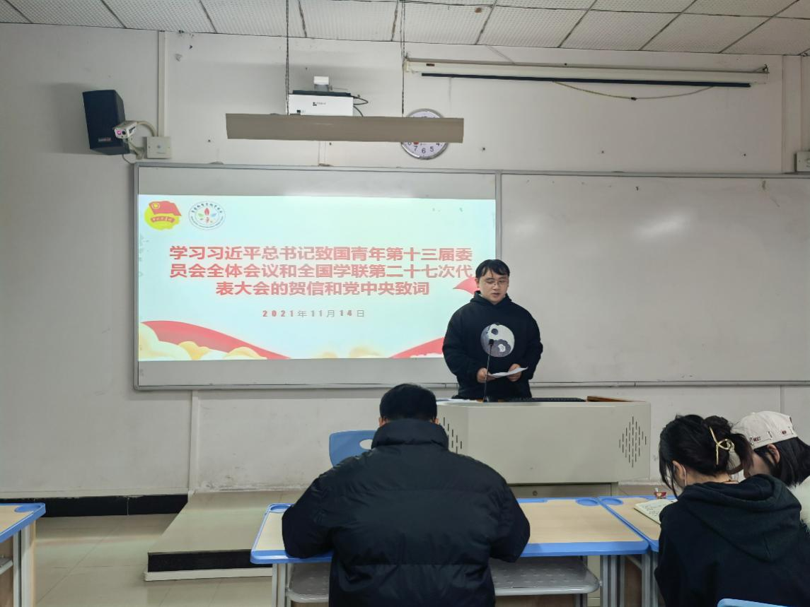 学生会主席团成员黄江林组织学习习近平总书记致全国青年第十三届委员会全体会议和全国学联第二十七次代表大会的贺信和党中央致词