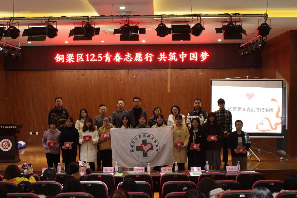 在12月5日暨国际志愿者日来临之际,为唤起更多的学生以志愿者身份,深入开展医院青年志愿者活动,进一步增强青年团员的志愿、责任、奉献意识,充分发挥高校教育宣传主阵地和大学生群体易于接纳、便于传播等优势, 2020年12月1日,学前教育学院携手铜梁区人民医院天使志愿服务队,在铜梁校区学术报告厅举办了一场以“防疫抗疫救在身边,携手同行守护校园”为主题的公益活动。共青团重庆市铜梁区委副书记李鑫、共青团重庆市铜梁区委青少年服务部部长陈智勇、铜梁区人民医院群团办公室主任闫雪峰、铜梁区人民医院团委副书记刘畅、铜梁区人民医院团委副书记李婉娜、铜梁区人民医院感染性疾病科主任曹榆、铜梁区新芽义工负责人逯杰,学前教育学院直属党支部书记陶媛媛,学前教育学院2020级全体同学参加了此次活动。