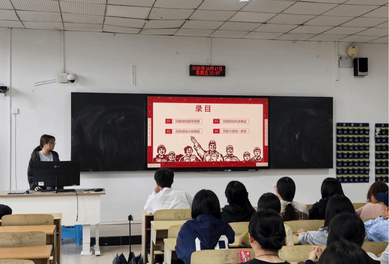 当前,国家正全面推进中华民族共同体意识教育,将其融入国民教育、干部教育、社会教育各方面。新的民族工作方针政策持续引导各族群众牢固树立休戚与共、荣辱与共、生死与共、命运与共的共同体理念,构筑中华民族共有精神家园。在此背景下,推动民族团结进步事业向纵深发展,特别是在青年学生中筑牢思想根基,已成为高校落实立德树人根本任务的重要环节。2025年10月17日,教育学院2025级学前教育1班团支部于A3304教室组织开展了《民族团结一家亲,同心共筑中国梦》主题团日活动。支部全体成员与班级同学积极参与,在集体学习与互动实践中凝聚思想共识、激发使命担当。